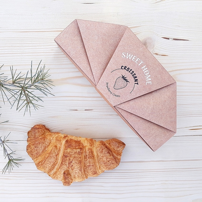 Next to the pastries, another aspect that is equally important to the shop’s appearance is the packaging. Most shops tend to use regular wrapping paper or put them all together in a box. If you want to make your green tea croissants stand out, you can create different packaging. In addition to helping create a unique identity for the shop, it also ensures that each croissant is stored in a separate box, keeping it from getting damaged.