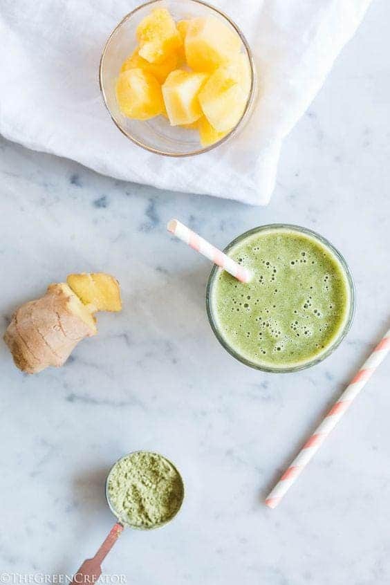 วิธีทำแสนง่ายเพียงนำ ผงมัทฉะ 1 ช้อนชา + น้ำสับปะรด 5 ออนซ์ + ขิง ⅛ ช้อนชา + นมมะพร้าว ¼ ถ้วย + น้ำตาล 1 ช้อนชา + น้ำเย็น 6 ออนซ์ หลังจากปั่นรวมกันเสร็จเรียบร้อยแล้วก็เทลงไปในแก้วที่ใส่น้ำแข็งเตรียมไว้ เป็นอันเสร็จเรียบร้อย