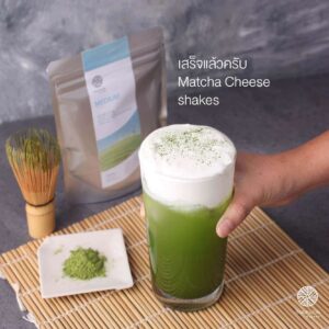 - นำมัทฉะที่เย็นแล้ว เติมน้ำแข็ง แต่งหน้าด้วยครีมชีส และผงมัทฉะ MATCHAZUKI เกรด Medium เสร็จแล้วค่ะ พร้อมเสิร์ฟได้เลย